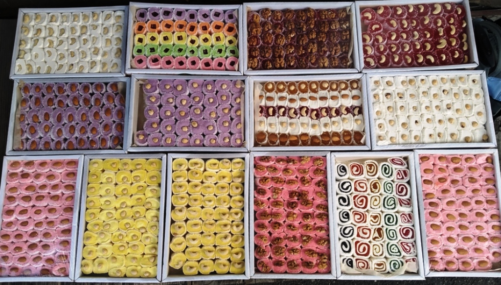 Название | Количество в упаковке кг | Цена за 1 кг | CУЛТАН | | Султан с фундуком | 1,5 кг | 68 | | Султан с миндалем | 1,5 кг | 68 | | Султан с грецким орехом | 1,5 кг | 68 | | Султан с гранатом и орехом | 1,5 кг | 68 | CУЛТАН ЕЖЕВИКА | | Султан с фундуком | 1,5 кг | 68 | | Султан с кешью | 1,5 кг | 68 | | Султан с грецким орехом | 1,5 кг | 68 | | Султан с миндалем | 1,5 кг | 68 | CУЛТАН КЛУБНИКА | | Султан с фундуком | 1,5 кг | 68 | | Султан с кешью | 1,5 кг | 68 | | Султан с грецким орехом | 1,5 кг | 68 | | Султан с миндалем | 1,5 кг | 68 | CУЛТАН ГРАНАТ | | Султан с фундуком | 1,5 кг | 68 | | Султан с кешью | 1,5 кг | 68 | | Султан с грецким орехом | 1,5 кг | 68 | | Султан с миндалем | 1,5 кг | 68 | CУЛТАН БАНАН | | Султан с фундуком | 1,5 кг | 68 | | Султан с кешью | 1,5 кг | 68 | | Султан с грецким орехом | 1,5 кг | 68 | | Султан с миндалем | 1,5 кг | 68 | CУЛТАН ПРОЗРАЧНЫЙ | | Султан с фундуком | 1,5 кг | 68 | | Султан с кешью | 1,5 кг | 68 | | Султан с грецким орехом | 1,5 кг | 68 | | Султан с миндалем | 1,5 кг | 68 | CУЛТАН АПЕЛЬСИН | | Султан с фундуком | 1,5 кг | 68 | | Султан с кешью | 1,5 кг | 68 | | Султан с грецким орехом | 1,5 кг | 68 | | Султан с миндалем | 1,5 кг | 68 | ПАЛЬЧИКИ | | Пальчик гранат | 1,5 кг | 65 | | Пальчик киви | 1,5 кг | 65 | | Пальчик апельсин | 1,5 кг | 65 | | Пальчик абрикос | 1,5 кг | 65 | | Пальчик лимон | 1,5 кг | 65 | | Пальчик банан | 1,5 кг | 65 | | Пальчик дыня | 1,5 кг | 65 | | Пальчик ежевика | 1,5 кг | 65 | | Пальчик виноград | 1,5 кг | 65 | | Пальчик молочный | 1,5 кг | 65 | | Пальчик ваниль | 1,5 кг | 65 | | Пальчик шоколадный | 1,5 кг | 65 | | Пальчик малина | 1,5 кг | 65 | | Пальчик зеленое яблоко | 1,5 кг | 65 | КЛАССИЧЕСКИЙ | | Классический с ароматом апельсина | 2 кг | 55 | | Классический с ароматом вишни | 2 кг | 55 | | Классический с ароматом яблока | 2 кг | 55 | | Классический с ароматом граната | 2 кг | 55 | | Классический с ароматом лимона | 2 кг | 55 | | Классический с ароматом абрикоса | 2 кг | 55 | ФРУКТОВЫЙ | | Яблочный рахат лукум | 1,5 кг | 68 | | Клубничный рахат лукум | 1,5 кг | 68 | | Фруктовый кубик микс | 1,5 кг | 65 | | Радуга | 2 кг | 68 | | Фруктовый набор №1 | 1,5 кг | 68 | | Фруктовый набор №2 | 1,5 кг | 68 | | Фруктовый набор ассорти | 1,5 кг | 68 | ШОКОЛАДНЫЙ | | Натуральный шоколад | 1,5 кг | 68 | | Шоколадный | 1,5 кг | 68 | | Али Баба | 2 кг | 68 | | Принц | 2 кг | 68 | КВАДРАТНЫЙ С ОРЕХАМИ | | Квадрат гранат с орехами | 2 кг | 68 | | Квадрат ваниль с орехами | 2 кг | 68 | | Квадрат киви с орехами | 2 кг | 68 | | Квадрат абрикос с орехами | 2 кг | 68 |